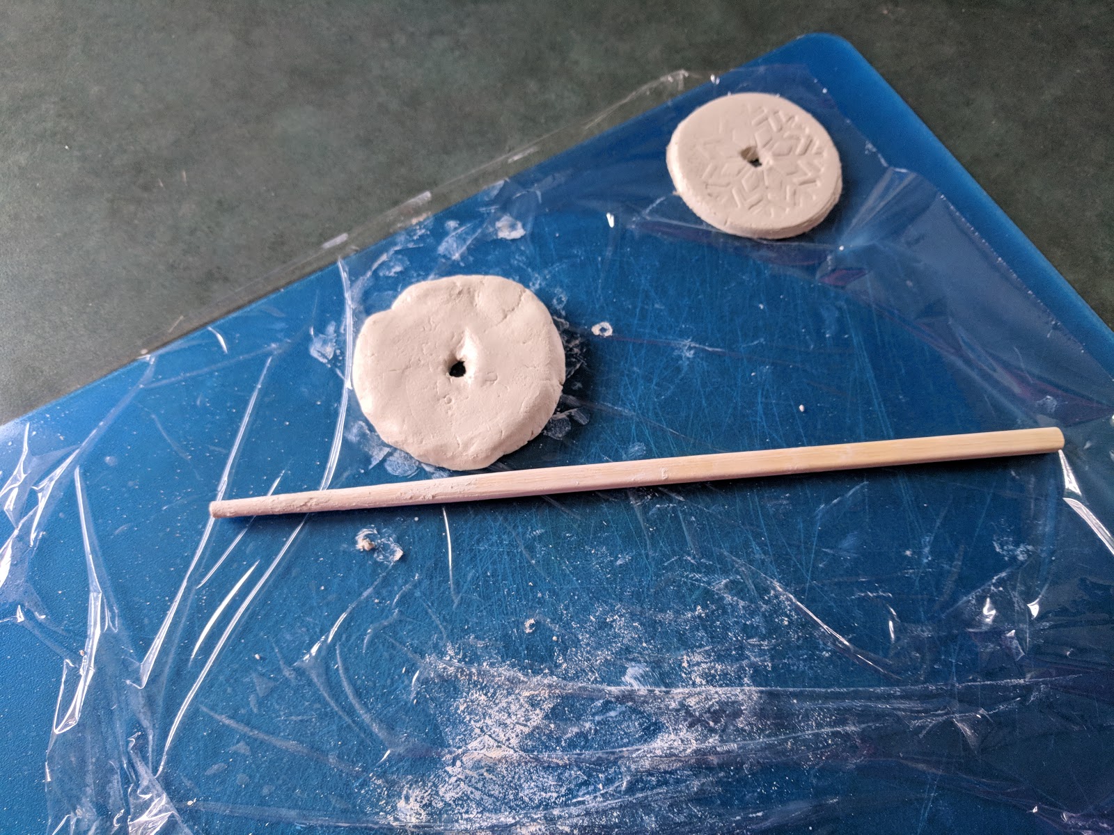 There's a lot of tutorials out there on how to make a drop spindle with a dowel and a toy wheel. But I wanted to make the whorls myself. I just like making things difficult, apparently.